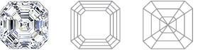The Asscher is a square diamond with diagonal corners and the facets are cut in a step-cut arrangement.